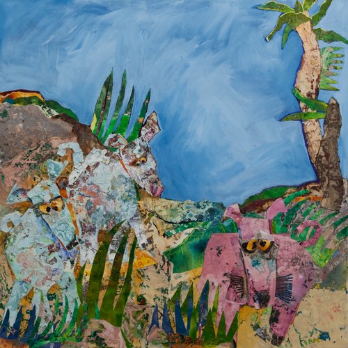This whimsical series is inspired by the animals I've met in my travels —the wild pigs on the beach in Costa Rica, the wild horses of Mongolia—and the beloved animals in my life.